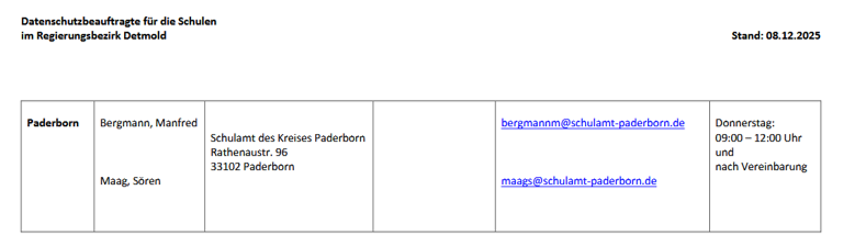 Hier die Erreichbarkeit des Datenschutzbeauftragten des Kreises Paderborn für behördliche Einrichtungen.